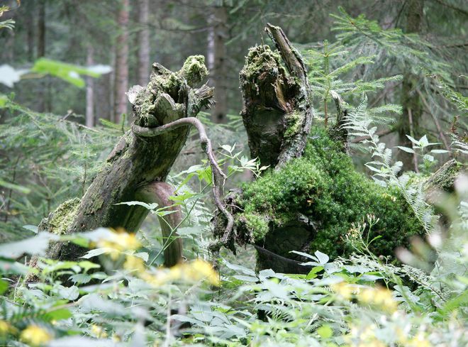 Vor allem die sogenannten Plenterwälder erschaffen märchenhafte Waldbilder mit unterschiedlichen Baumgenerationen auf kleinen Flächen. In diesen Wäldern wächst die Tanne mit der Stabilität eines tiefen, pfahlförmigen Wurzelwerks in atemberaubende Höhen von über 40 m und wird bis zu 450 Jahre alt.