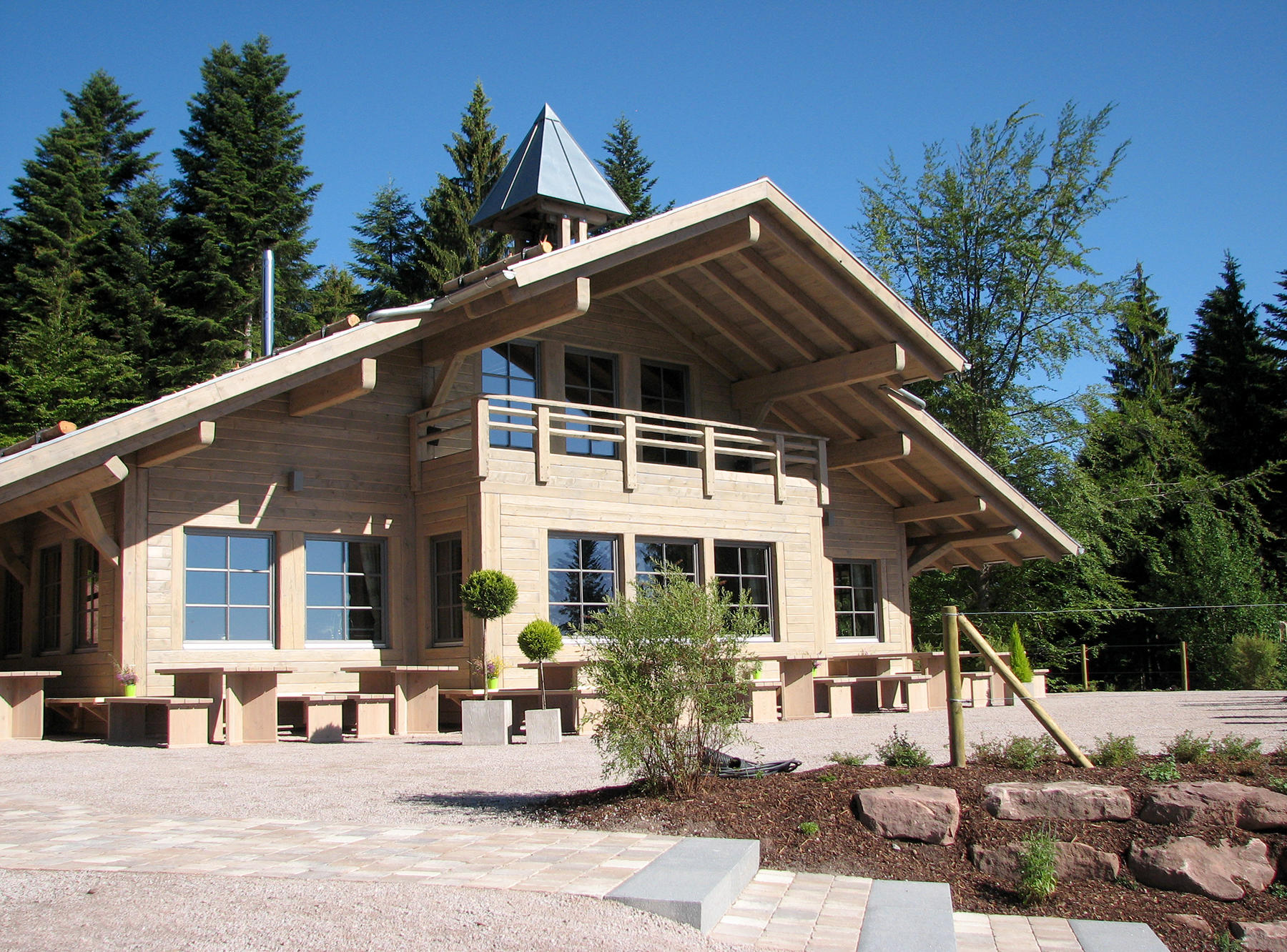 Auf einem gerodeten Waldgrundstück am Rande eines Skihanges wurde eine gastronomisch betriebene Wanderhütte, die Berghütte Lauterbad, in Holzständerbauweise errichtet. Äußere und innere Gestaltung spiegeln das Motto des Betreibers wider: „Tradition trifft Moderne“. Außenverschalung mit heimischer Weißtanne und Innenverkleidung mit Holz eines 200 Jahre alten Bauernhofs. Ein gelungenes Beispiel der behutsamen Einbindung eines Neubaus in die bestehende Naturlandschaft des Schwarzwaldes. Die Berghütte hat sich als beliebtes Ausflugsziel in kürzester Zeit zum touristischen Magnet entwickelt. Realisierung im Jahr 2014.