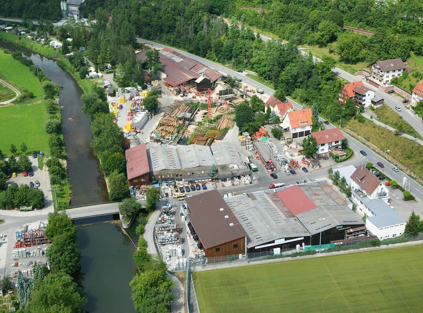 Sporthalle, Wohnhaus, Logistikhalle Kübler Holzwerk und Graf & Kübler Abbundzentrum